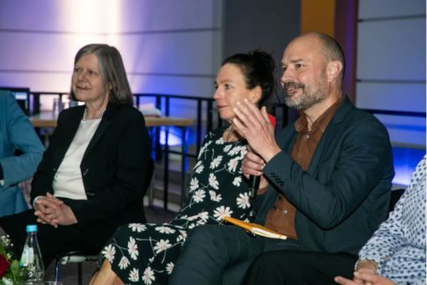 Anschließend wurden in einer Podiumsdiskussion, moderiert von Prof. Dr.-Ing. Christine Ahrend, Fachgebietsleiterin Integrierte Verkehrsplanung an der TU Berlin, die Potenziale der Gesellschaft für transdisziplinäre und partizipative Forschung und die damit verbundenen Erwartungen aus unterschiedlichen Perspektiven besprochen. Prof. Dr. Daniel Lang, Ko-Sprecher der tdAcademy, Leuphana Universität und Institut für Technikfolgenabschätzung (ITAS) am KIT, schilderte seine Motivation, dafür einzutreten, dass die Fachgesellschaft es ermöglicht, nach außen mit einer gemeinsamen Stimme aufzutreten und nach innen konstruktiv zu ringen. Oda Keppler, Leiterin der Unterabteilung Nachhaltigkeit und Zukunftsvorsorge im BMBF, wählte für partizipative und transdisziplinäre Forschung die Metapher eines Puzzles, in dem Einzelteile klar abgrenzbar blieben, das Gesamte aber ein neuartiges Bild ergebe. Dr. Steffi Ober, Initiatorin der Plattform Forschungswende und NABU Bundesverband, beschrieb Transdisziplinarität als Chance, lineare Vorstellungen von Transfer aufzubrechen und zirkuläre Prozesse zwischen Wissenschaft und Gesellschaft zu etablieren. Prof. Dr. Uwe Schneidewind, Oberbürgermeister der Stadt Wuppertal, hob hervor, dass der transdisziplinäre Forschungsmodus Kommunen dabei unterstützen könne, bestehende Routinen aufzubrechen. Lena Theiler, Projektmitarbeiterin tdAcademy und ISOE – Institut für sozial-ökologische Forschung Frankfurt a.M., machte auf die aktuell bestehende große Nachfrage nach Weiterbildungs- und Austauschformaten aufmerksam. Theres Paulsen, Leiterin td-net | Netzwerk für Transdisziplinäre Forschung, Akademien der Wissenschaften Schweiz, Bern, verwies auf die Bedeutung von Lehre für die Durchlässigkeit der Wissenschaften. Prof. Dr. Aletta Bonn, Leiterin Department Ökosystemleistungen am Helmholtz-Zentrum für Umweltforschung - UFZ, Friedrich-Schiller-Universität Jena, Deutsches Zentrum für integrative Biodiversitätsforschung (iDiv), Leipzig, unterstrich, dass partizipative Forschung das Potenzial habe, verteiltes Wissen zusammenzuführen. Das Prinzip „no innovation without participation“ solle gelebt werden.